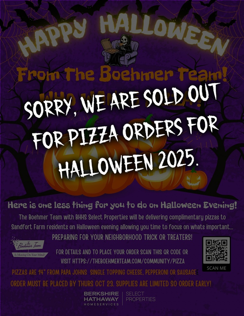 To show our love the Sandfort Farm community we would like to offer you complimentary pizza