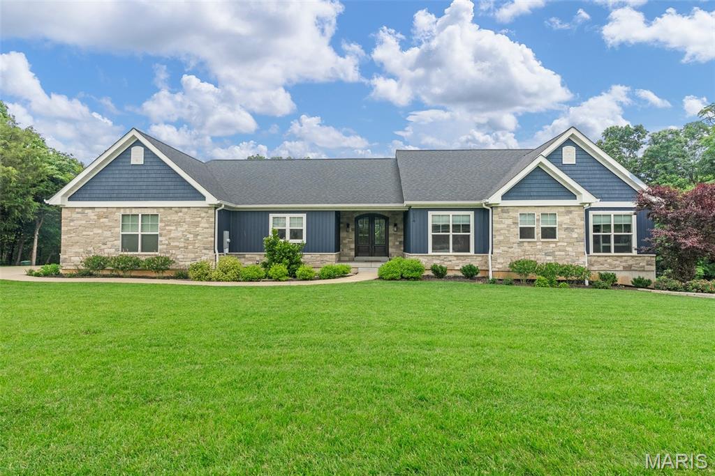 Don’t miss this stunning ranch nestled on over 11 acres! From the moment you arrive, the welcoming front porch draws you into a spacious interior featuring an open floor plan and light-filled rooms. The vaulted ceiling in the living room adds to the sense of space, while a cozy brick fireplace and large picture windows frame the serene, park-like backyard. The chef’s kitchen is a true showstopper—complete with quartz countertops, custom cabinetry, a center island with breakfast bar, stainless steel appliances, and a gorgeous tile backsplash. It opens seamlessly to both the dining room and a sitting room, creating an ideal layout for entertaining and hosting family gatherings. The primary suite is your private retreat, boasting a built-in fireplace, WIC, private screened porch and a luxurious ensuite bath featuring double vanities, a spa-like shower with multiple showerheads, and a built-in bench. 2 additional main floor bedrooms share a Jack-and-Jill bathroom. A convenient mudroom, half bath, and laundry room are located just off the kitchen. The finished lower level offers exceptional flexibility with a large recreation room, separate family room perfect for movie nights, 2 additional bedrooms, a full bath, and a dedicated exercise room. Enjoy peaceful outdoor living from the back patio, where you can take in views of your expansive, tree-lined property. The barn completes this dream property! This is the perfect blend of luxury, comfort, and nature—truly a rare find!